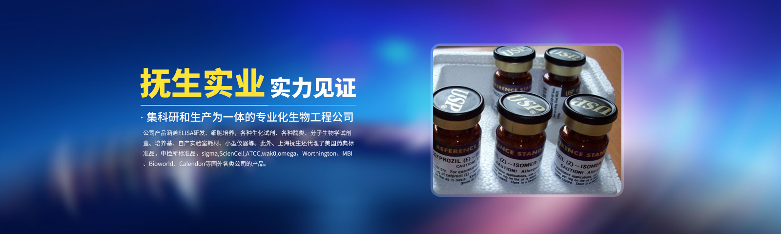 上海撫生實業(yè)有限公司(ShanghaiFushengIndustrialCo.,Ltd.,China)是一家生物企業(yè),主要從事免疫學(xué)、分子生物學(xué)和常規(guī)生化試劑的銷售。主營產(chǎn)品:生化試劑、試劑盒、ELISA試劑盒、抗體、重組蛋白、生化檢測試劑盒、分光光度法檢測試劑盒、熒光定量PCR檢測試劑盒、細胞株、原代細胞、細胞培養(yǎng)基、標準溶液產(chǎn)品。代理并銷售進口SIGMA試劑、abcam抗體、R&D抗體、CST抗體、ATCC細胞、BD公司、GE公司、賽默飛世爾公司產(chǎn)品。上海撫生實業(yè)有限公司(ShanghaiFushengIndustrialCo.,Ltd.,China)先后與天津中醫(yī)學(xué)院、復(fù)旦大學(xué)、上海交通大學(xué)醫(yī)學(xué)院、上海交通大學(xué)、華東師范大學(xué)、第二軍醫(yī)大學(xué)、南京大學(xué),暨南大學(xué),南京工業(yè)大學(xué),曙光醫(yī)院、華山醫(yī)院、瑞金醫(yī)院、上海有機研究所、中科院上海分院等多家單位建立了良好的合作關(guān)系。本公司可為您提供科研...